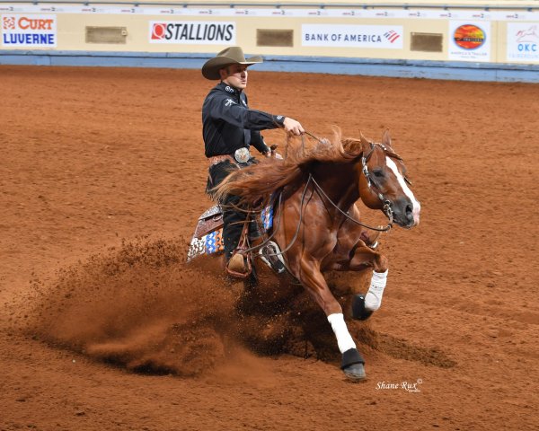 ♦ 2019 AQHA World Champion Senior Reining ♦ 2019 Reserve Champion SWRHA Winter Slide Lvl 4 Open Derby ♦ 2019 Champion SWRHA Winter Slide Lvl 3 Open Derby ♦ 2018 3rd Place OKRHA Rd/Sld Novice horse Open Derby ♦ 2018 14th Place OKRHA Rd/Sld Open Derby ♦ 2017 6th Place Wild Card Reining Challenge 4YO Open Stks ♦ 2017 13th Place Cactus Classic Open Derby ♦ 2016 3rd Buckeye Open Reining Futurity ♦ 2016 20th Congress Reining Open Futurity ♦ 2016 2nd Place NRHA Futurity Go1 Open