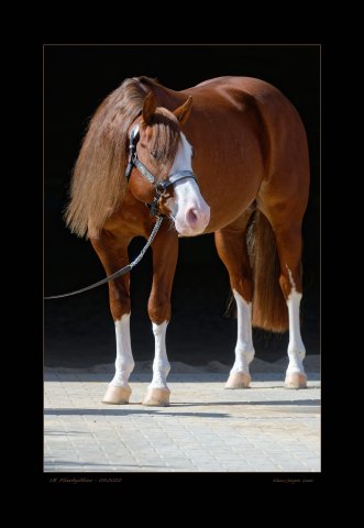 SR FLASHYBLUE ist ein sehr hübscher Hengst, kräftig und kompakt gebaut mit sehr gutem Fundament und toller Oberlinie.